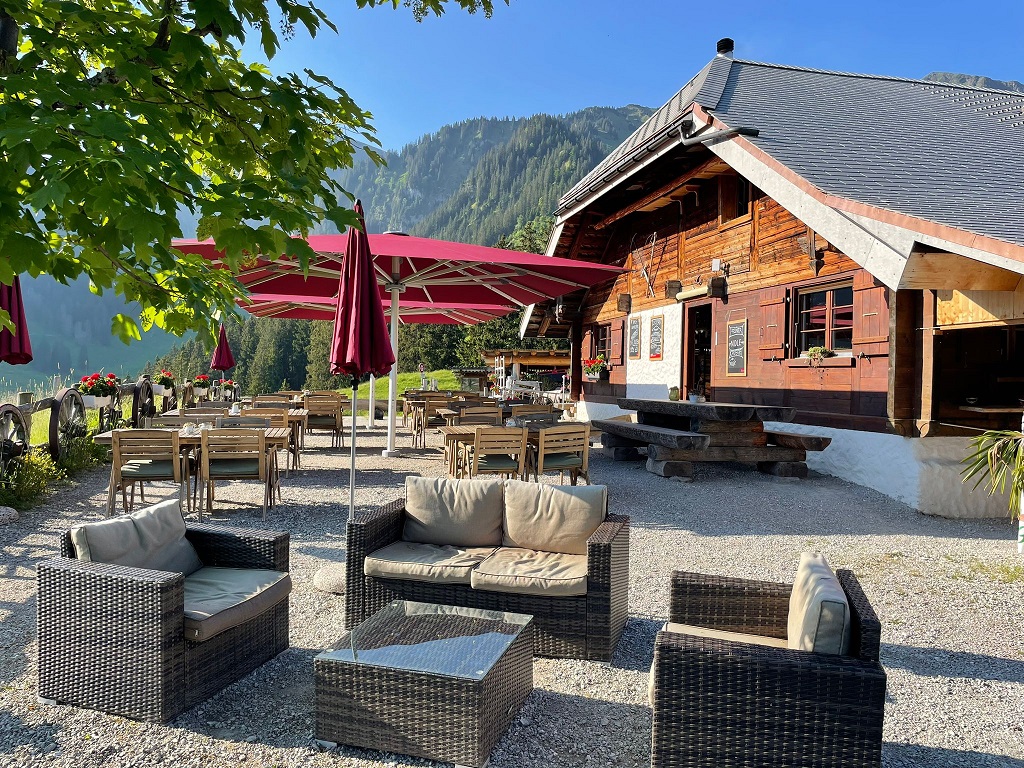 Regionale Köstlichkeiten kombiniert mit einer wunderschönen Aussicht auf die Kaiseregg und das Muscherental.