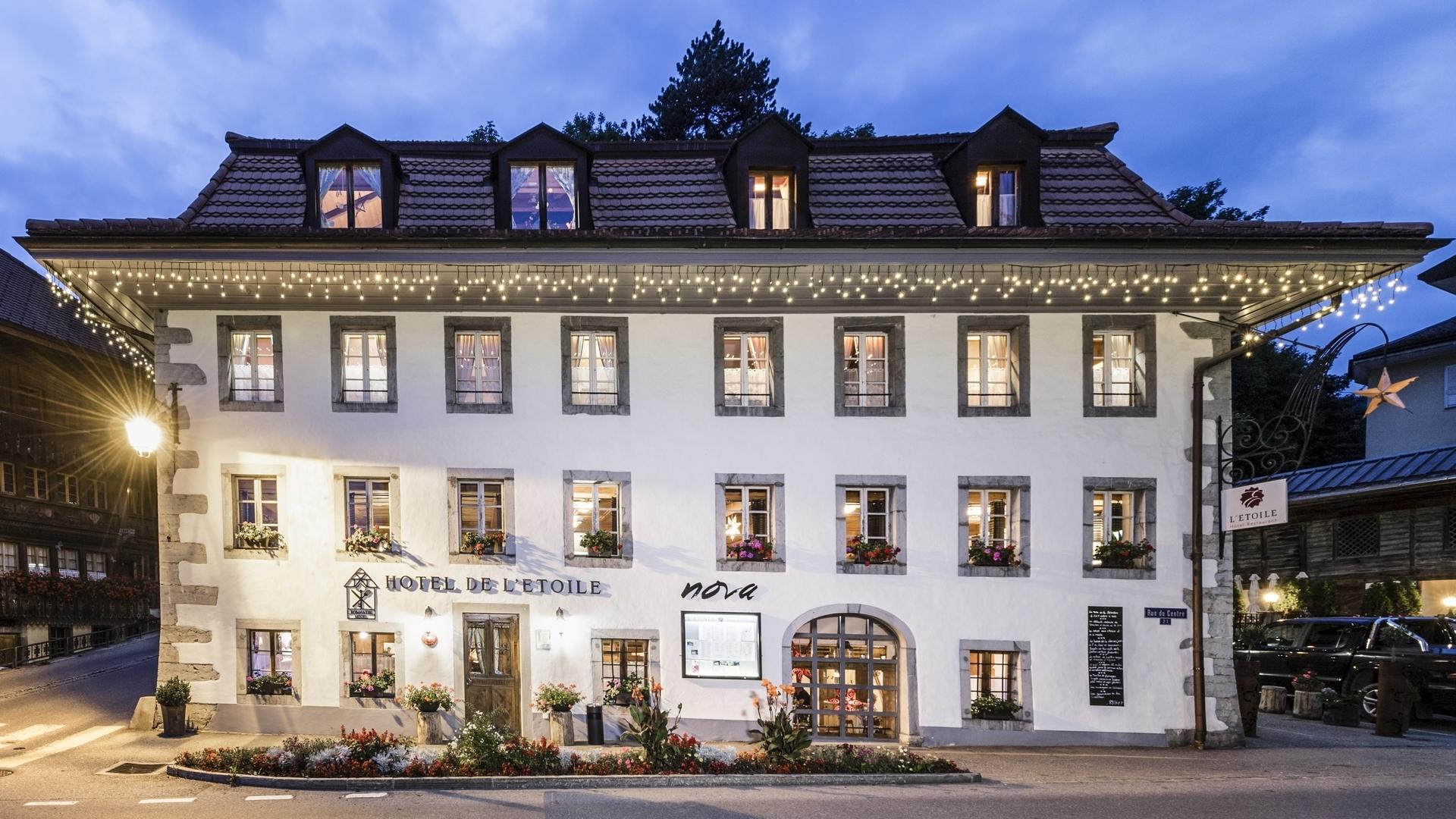 Romantik Hôtel l’Etoile Hinter der mit blühenden Fassade verbergen sich die 8 Zimmer, die Familiensuite und das Bistronomierestaurant Nova des Romantik Hôtel l'Étoile. Doppelzimmer: ab CHF 180.- Weitere Informationen Link Webseite